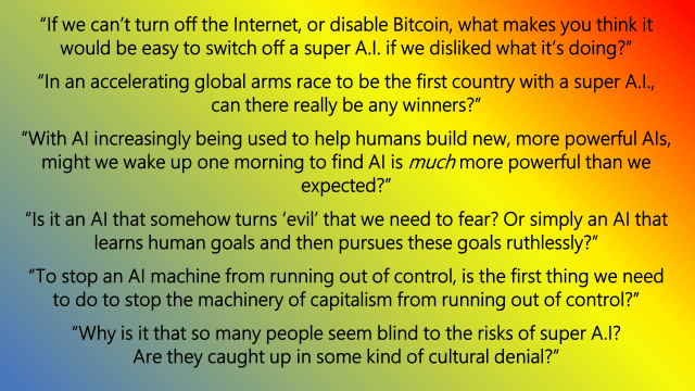 - Why is it that so many people seem blind to the risks of super A.I? Are they caught up in some kind of cultural denial?