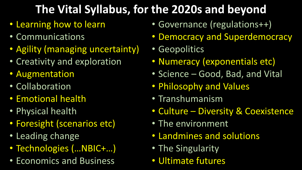 Several topics that used to be restricted to fringe meetings – such as those organised by London Futurists – are nowadays being addressed much closer to the centre of public discussion.