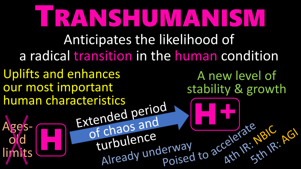 In case it’s not clear, I’ll be championing the idea of transhumanism as being especially important in the present time.