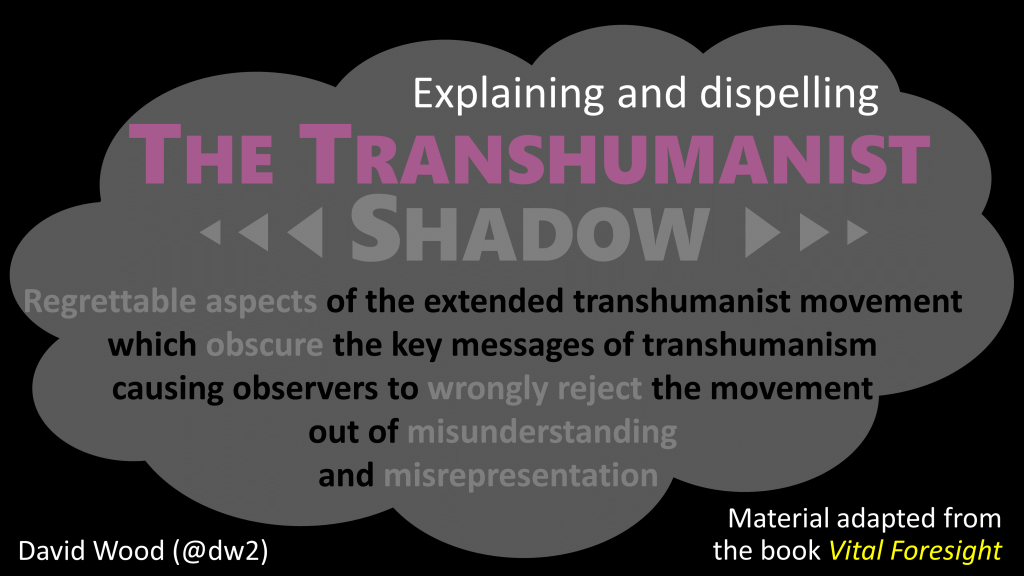 For example, I have agreed to be the main speaker this Sunday(2nd January) at the U.S. Transhumanist Party Virtual Enlightenment Salon on the subject of “The Transhumanist Shadow”.