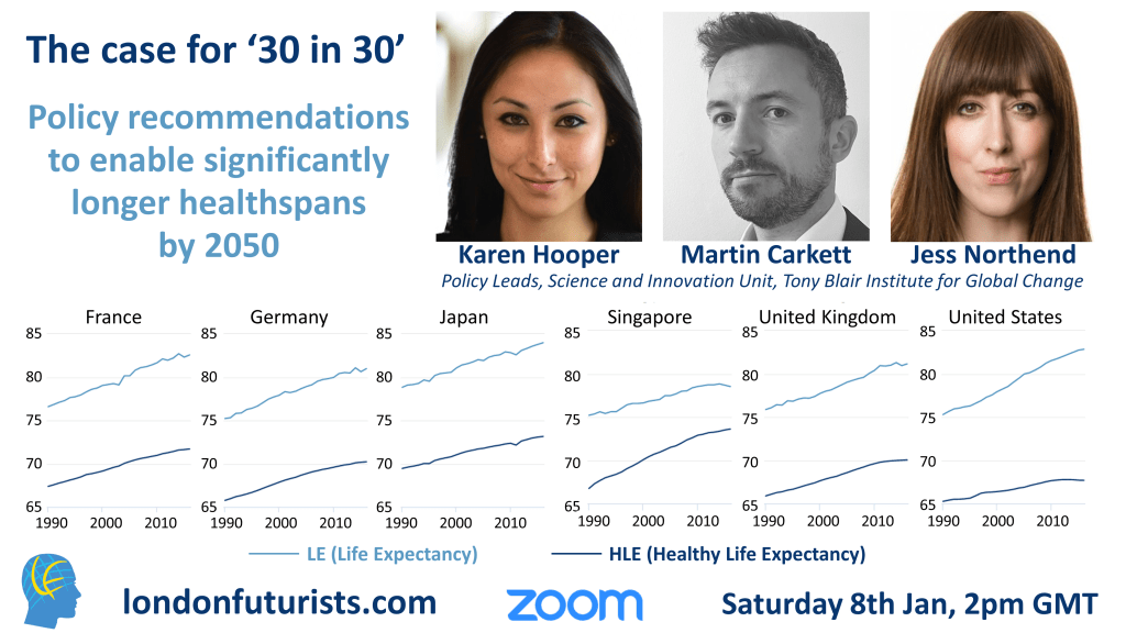 Our meeting tomorrow – Saturday 8th January – looks at possible political policy changes to assist the development of anti-aging interventions.