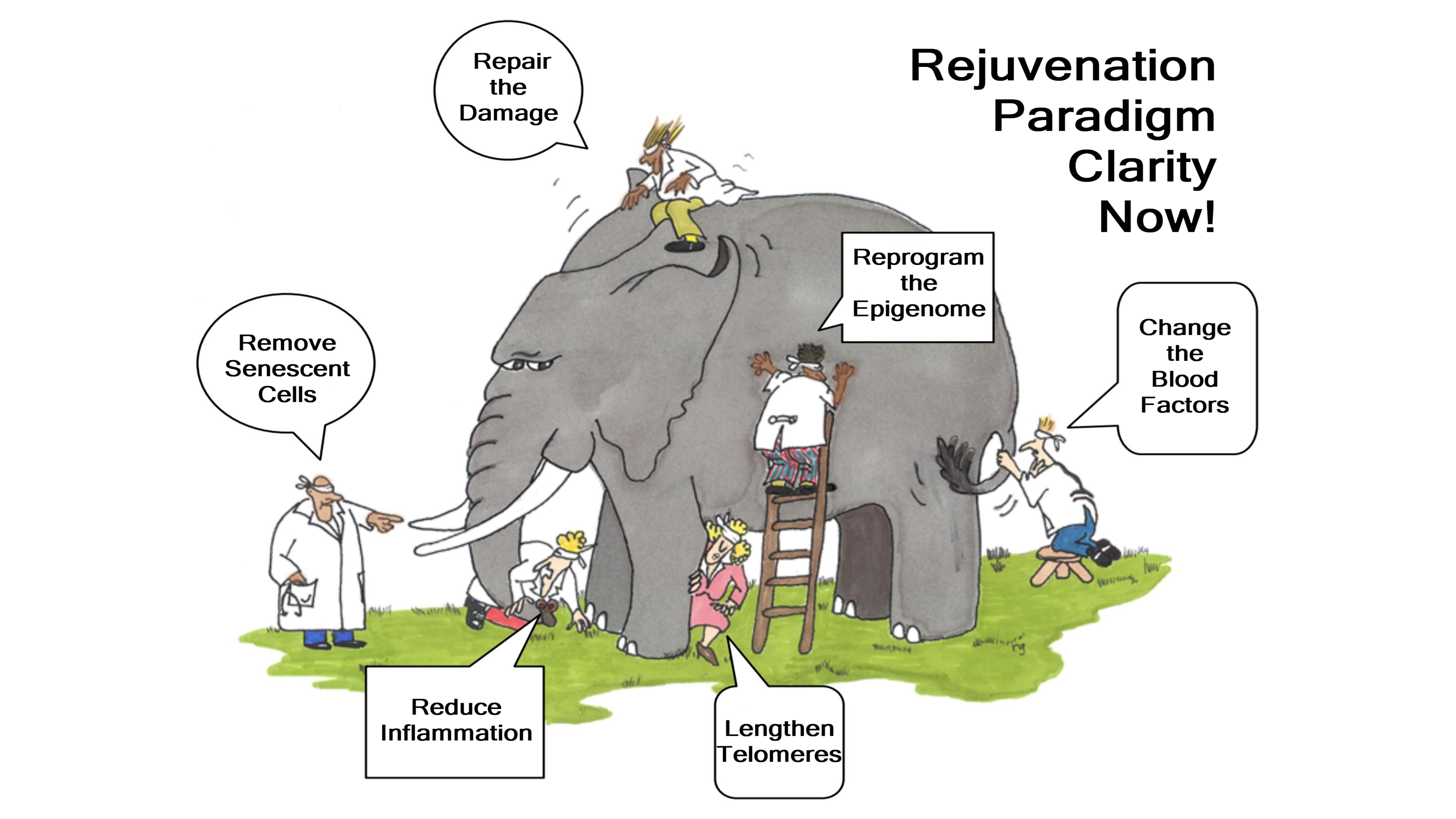 The metaphor of the blindfolded observers and the elephant features in what has come to be called “the programmed younging theory of aging and rejuvenation”.