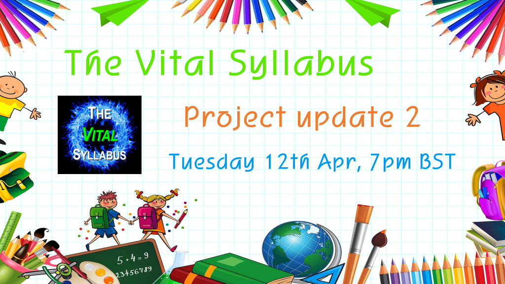 There’s an opportunity on Tuesday next week (12th April) to take part in a Vital Syllabus project update meeting.