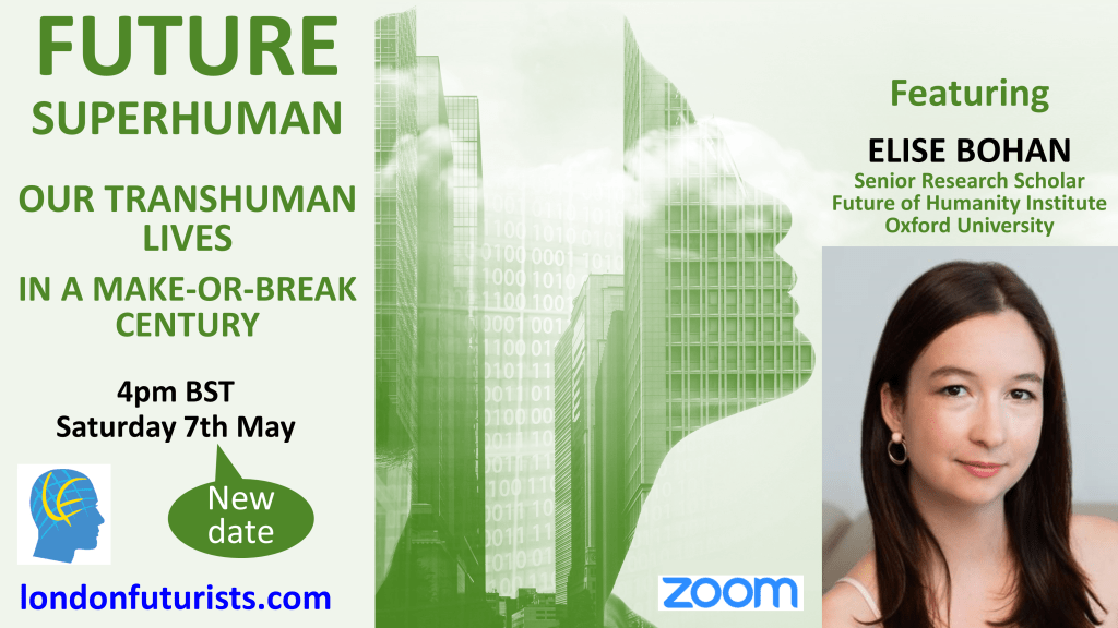 More feedback for the book Future Superhuman: Our transhuman lives in a make-or-break century, has steadily been accumulating since the London Futurists webinar with the same name as the book was first announced. To whet your appetite for that webinar – which is taking place this Saturday and features the author of the book, Elise Bohan – let me share some of that feedback: