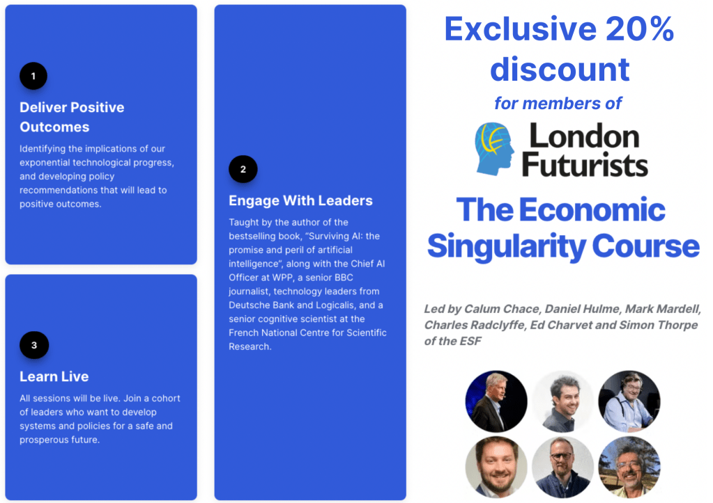3.) The Economic Singularity Course – 20% discount for London Futurists