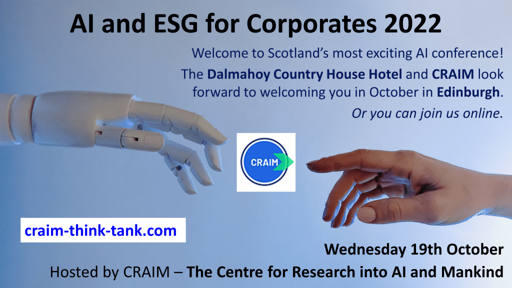 Please join us at our upcoming conference on 19th October in Edinburgh: AI and ESG for Corporates 2022.