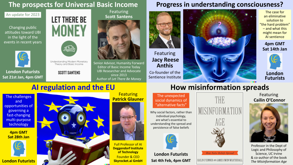 Live webinars have been scheduled for each of the next four Saturdays. In each case, I believe the topic has deep importance for the public discussion about achieving better futures. All four events are scheduled to start at 4pm UK time. Please take a look!