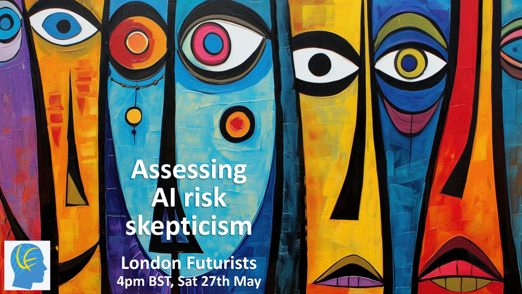 There are some details on one of the London Futurists meetup pages. It’s free to attend, but you should click through to the event’s Eventbrite page to register in advance.