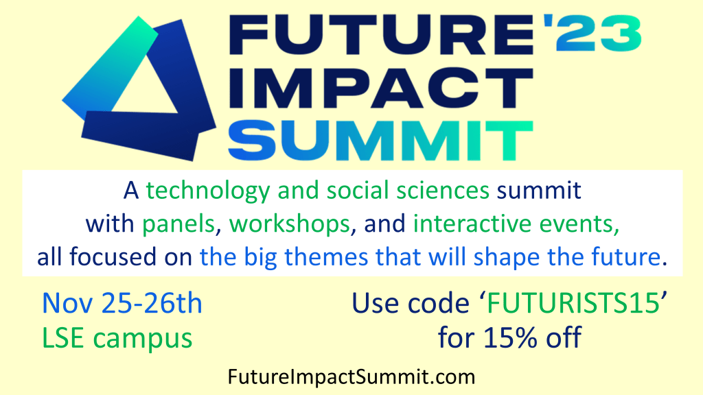 London Futurists is pleased to partner with the London Alumni Association of LSE to support this year’s Future Impact Summit. Over two days, the Summit includes: