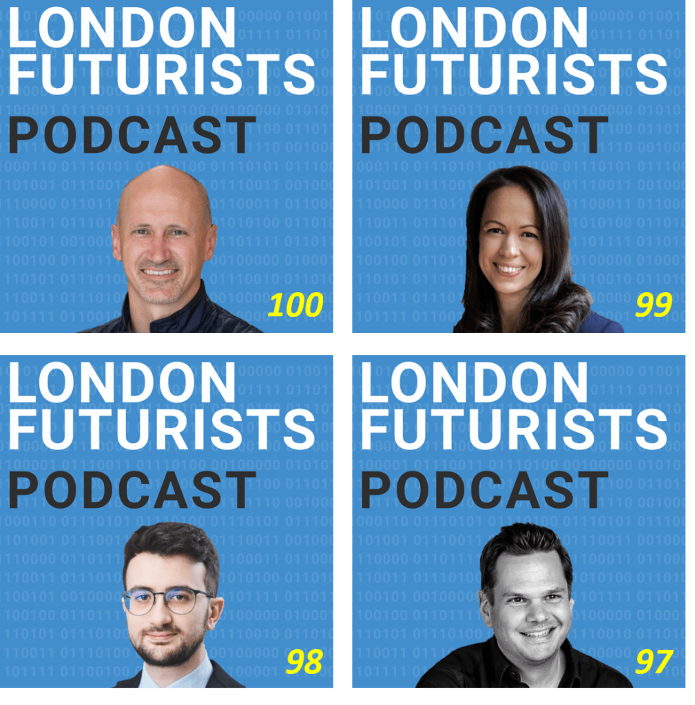 Since our last newsletter, another four more episodes of London Futurists Podcast have been released: