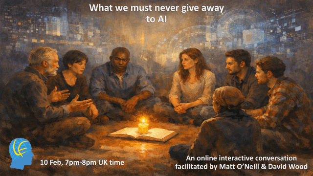 Don’t forget that there will be an online Google Meet conversation on Tuesday evening, jointly facilitated by Matt O’Neill and me, with the title “What we must never give away to AI”.