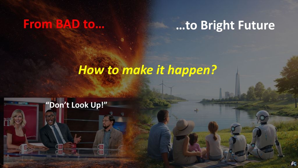 To consider the bigger picture, London Futurists will be hosting an online “swarm” conversation in a Zoom meeting room, from 7:30pm UK time on Wednesday 25th February, with the title “From Bad to Bright Future: How to make it happen”.